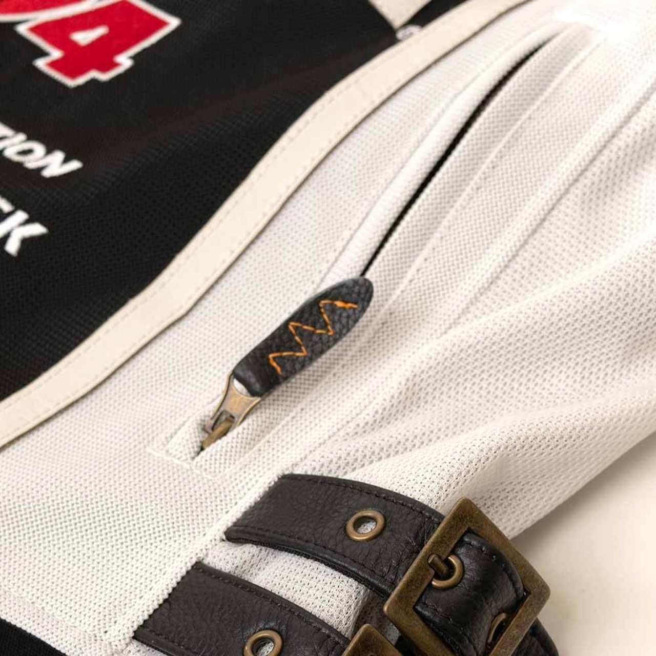 両腕3本ライン・腹部ライン・背中のワンスターも本革を採用。