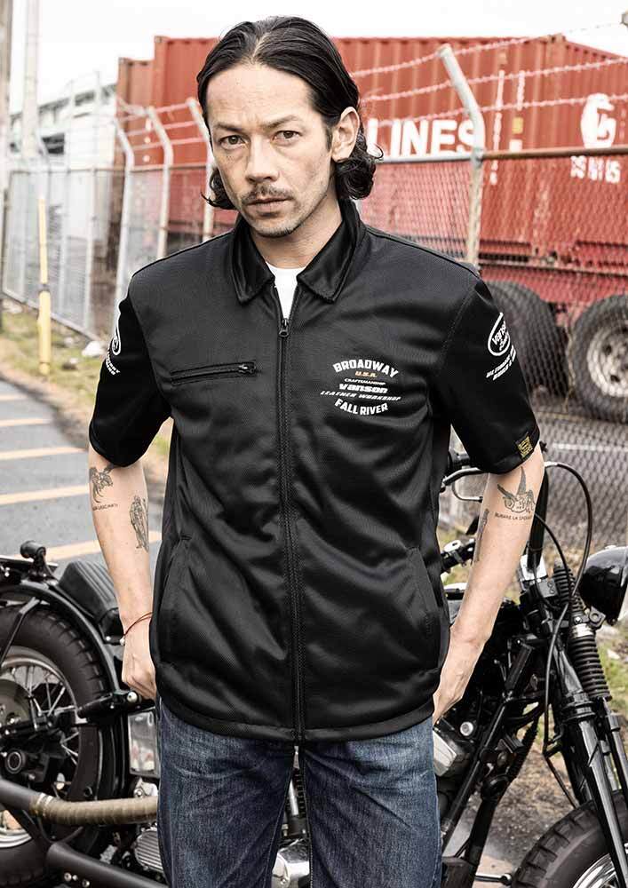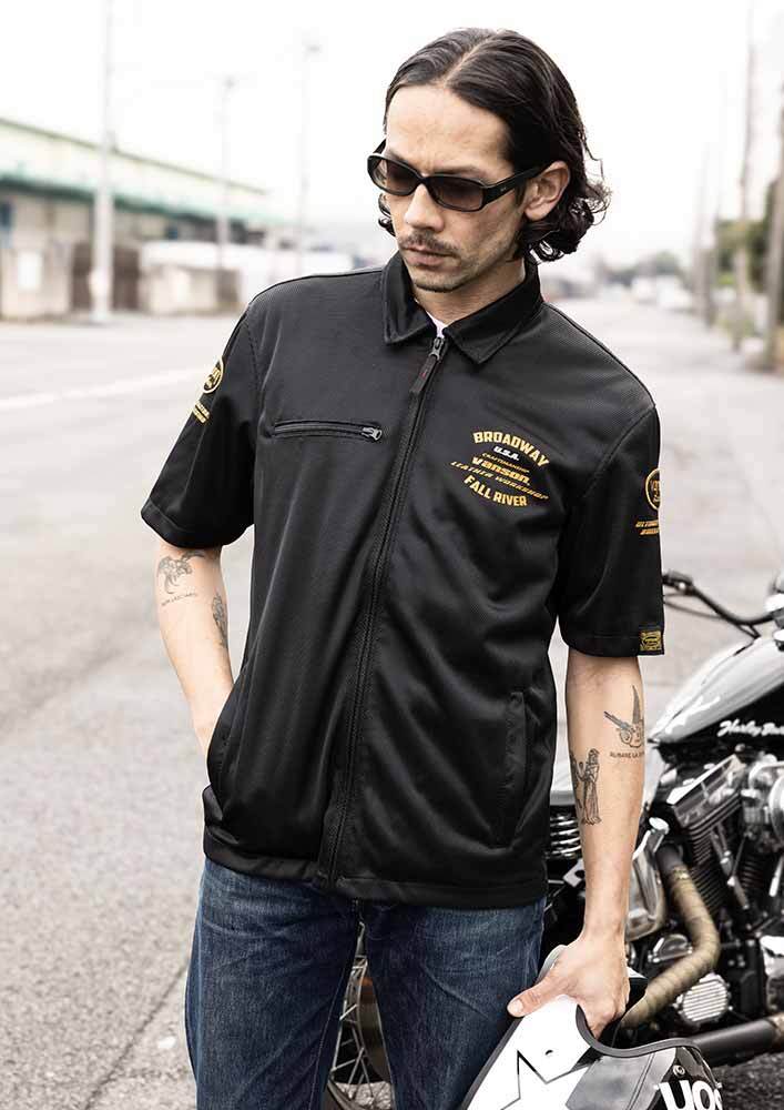 伸縮性と通気性に優れたメッシュストレッチ生地を採用したワークシャツ。